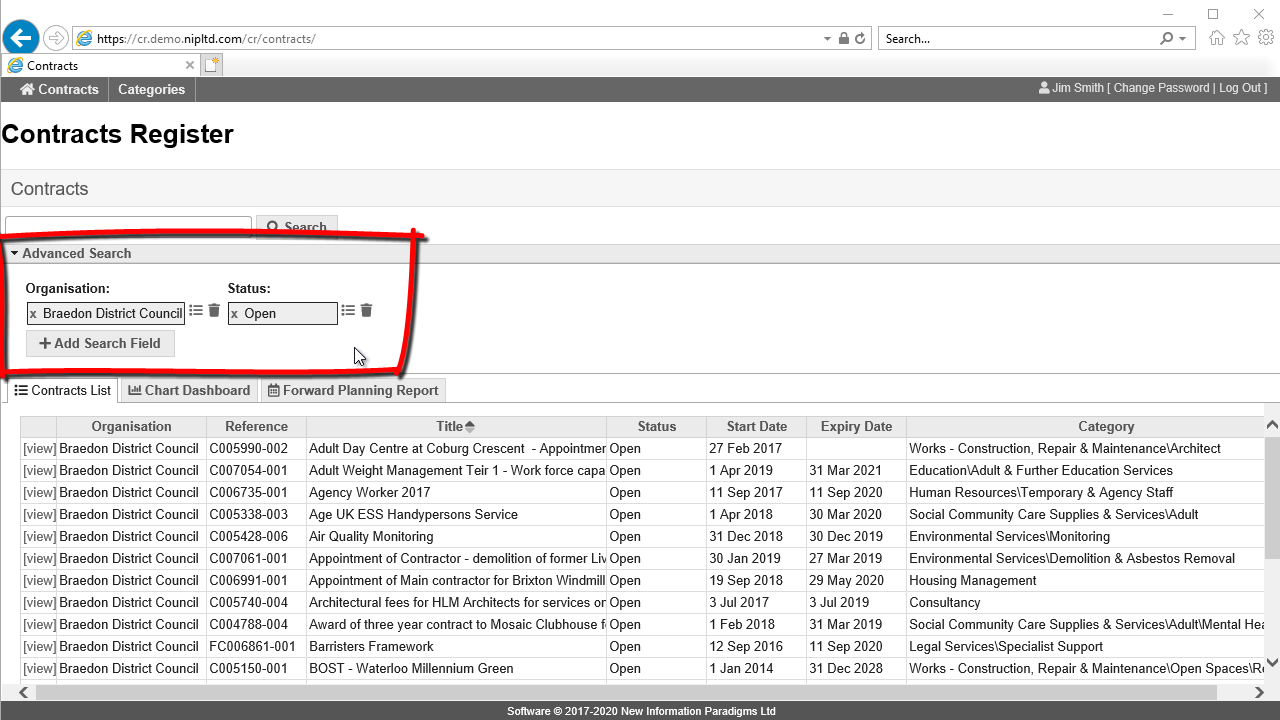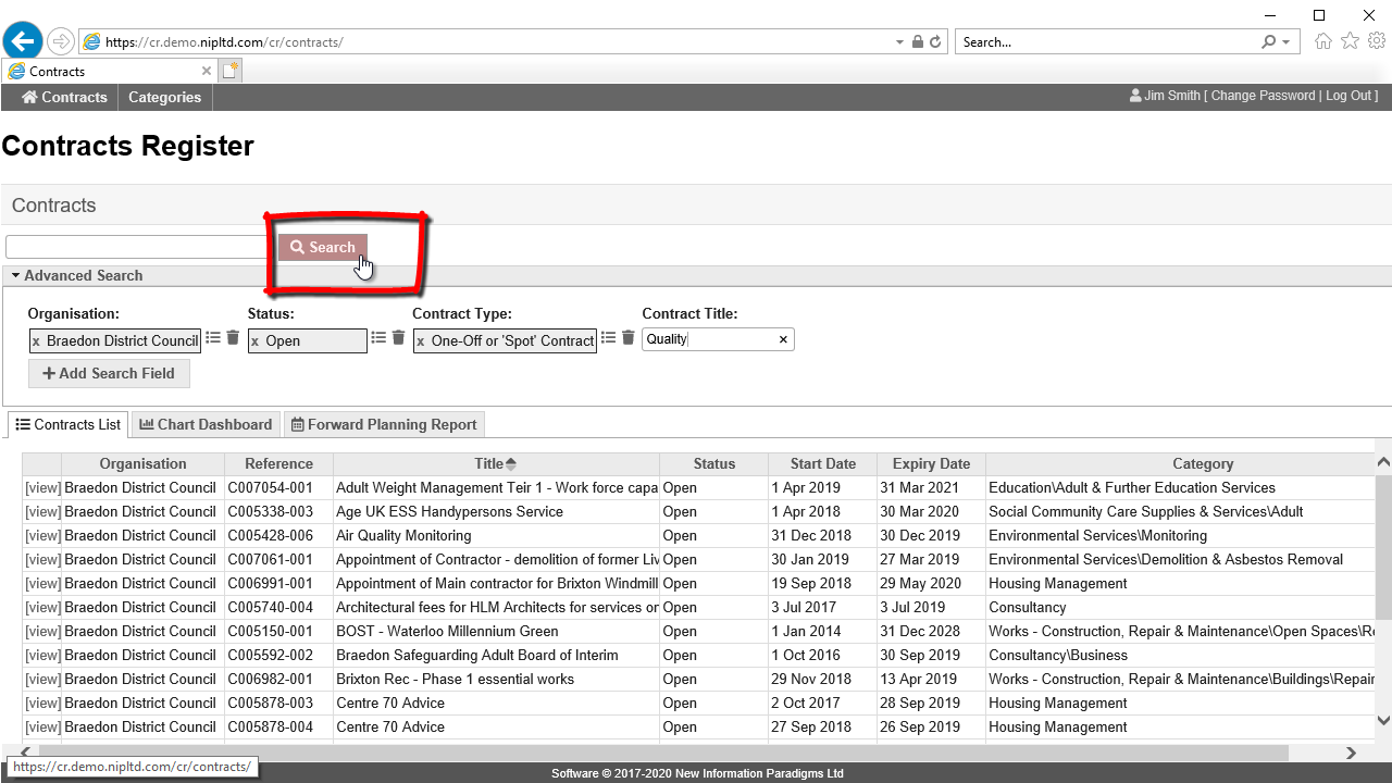 How to search and view contracts shows how to further explore the contracts found.