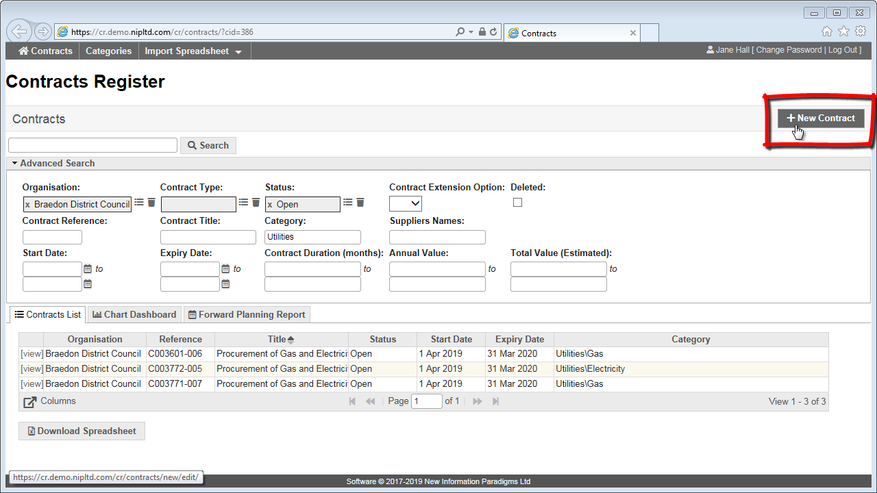 Before adding a new contract first use the search and filters to check it isn’t already there.