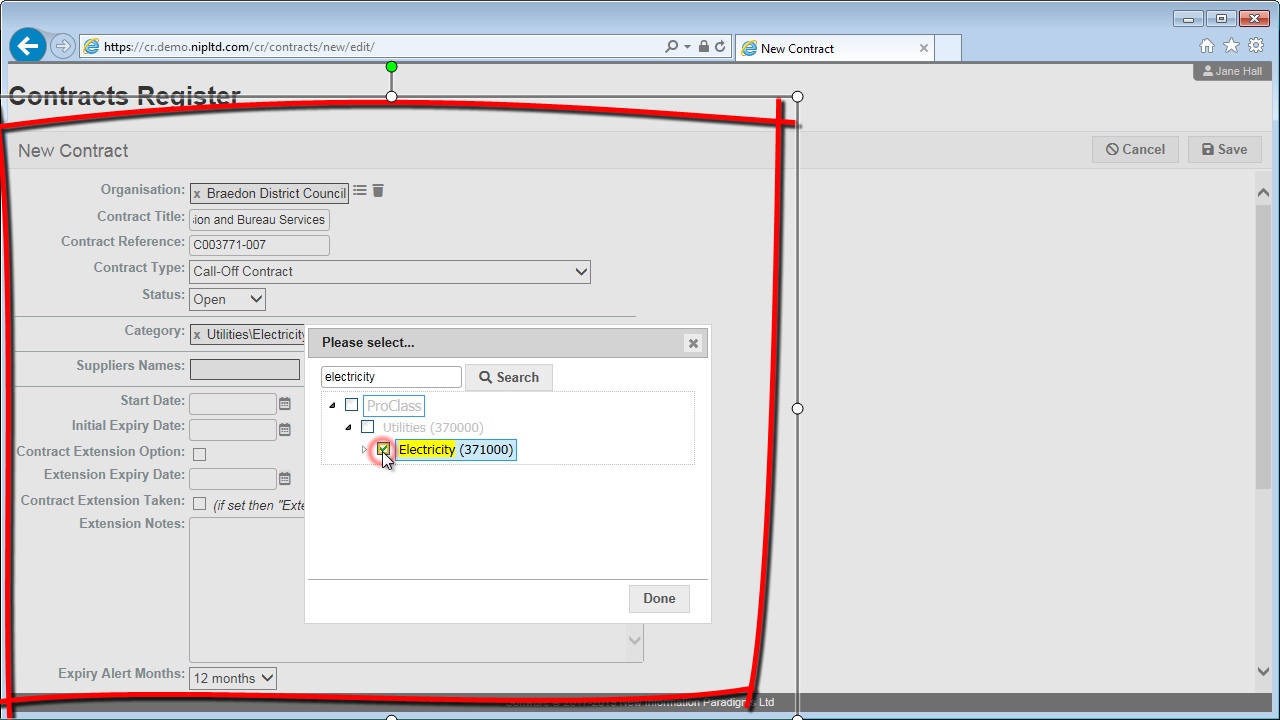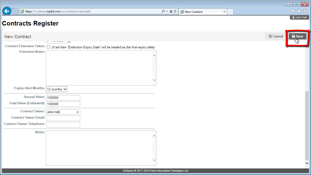 Enter as much contract information as possible (Note: some fields are mandatory – see field descriptions for detail).